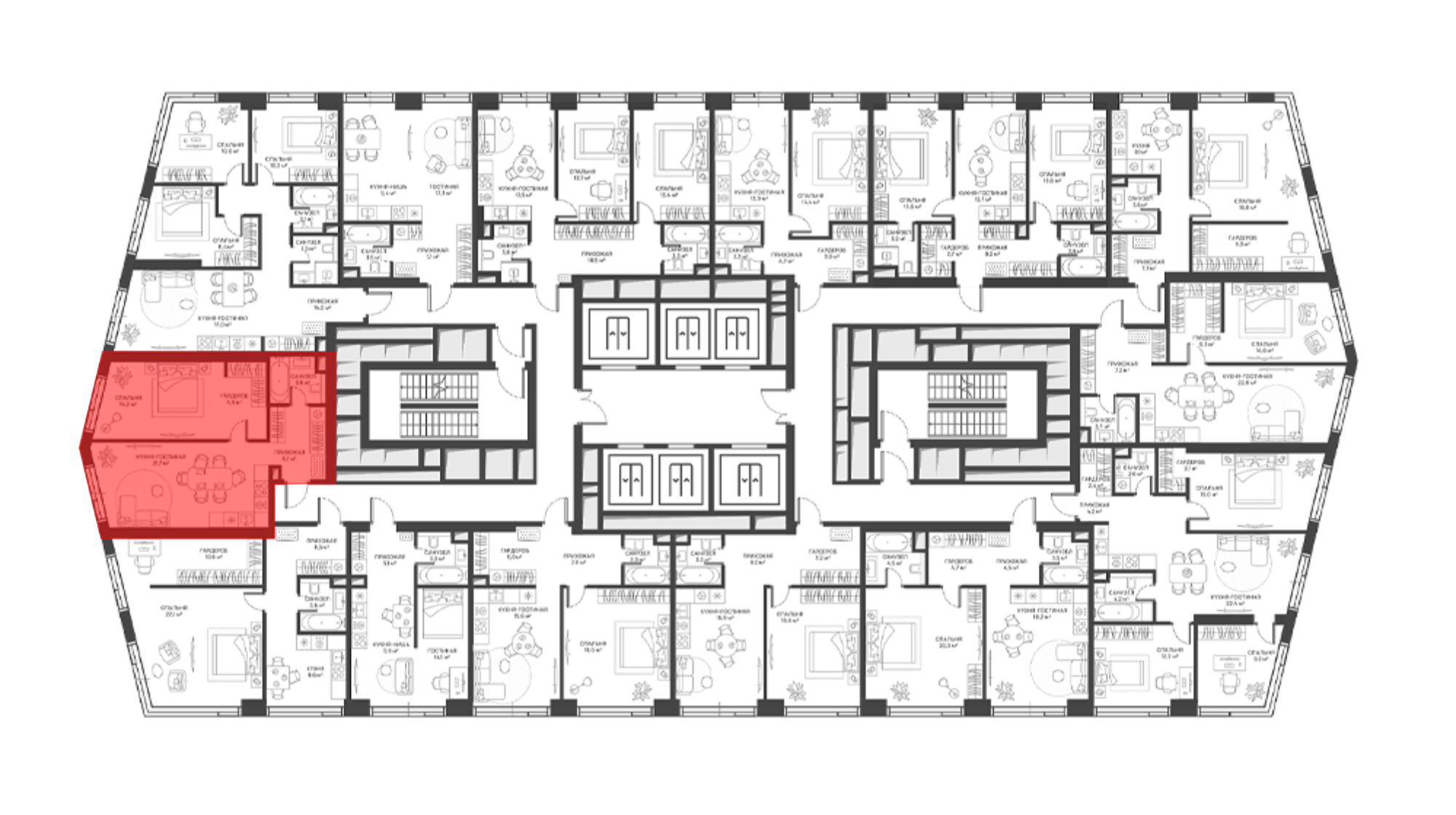 В проекте представлены студии и квартиры с 1, 2 и 3 комнатами, в которых предусмотрены потолки от 3 метров и панорамные окна. Помещения идут без внутренней отделки, что дает возможность будущим владельцам самостоятельно организовать пространство. Для удобства жителей установлена система умный дом, которая позволяет через мобильное приложение управлять доступом в квартиру и видеонаблюдением.