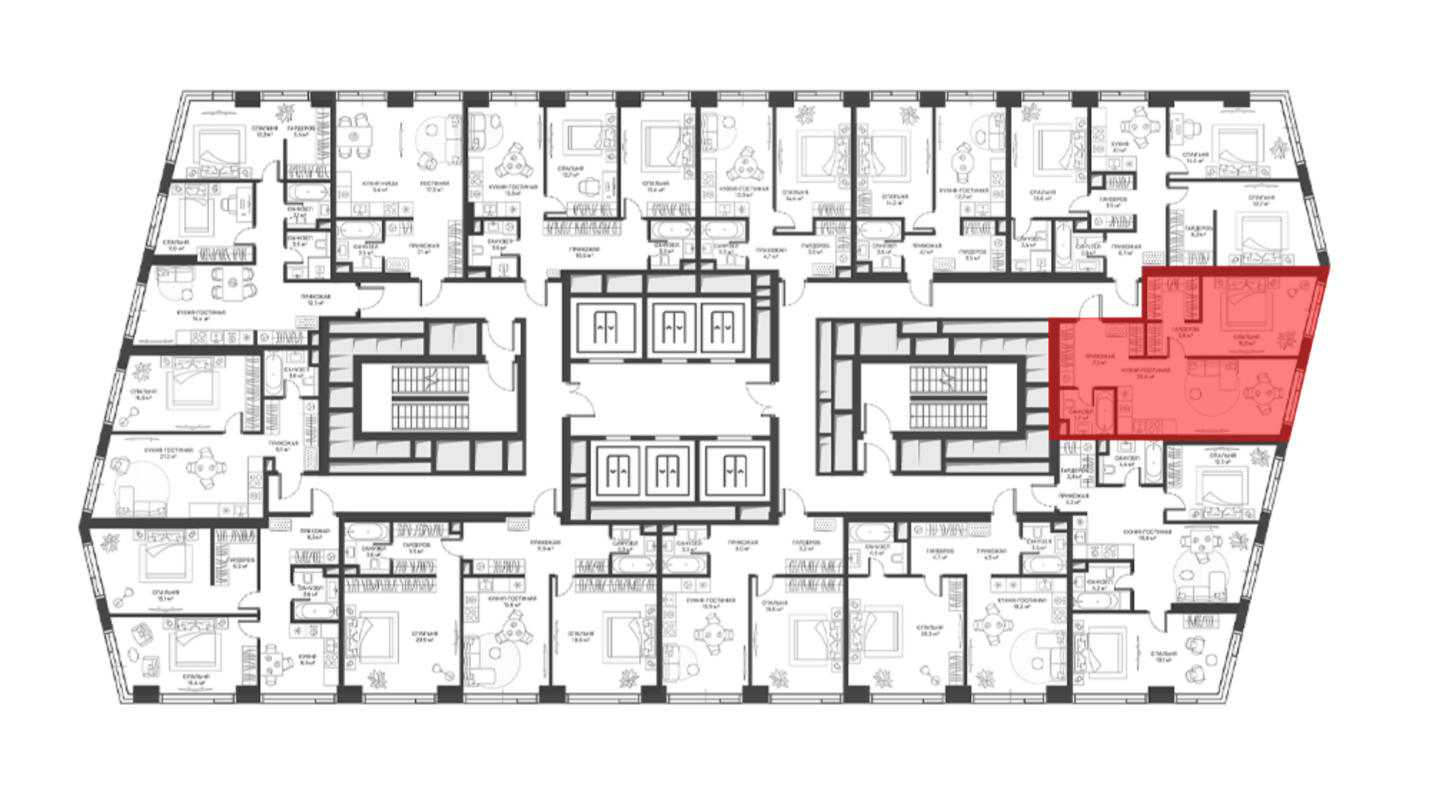 В проекте представлены студии и квартиры с 1, 2 и 3 комнатами, в которых предусмотрены потолки от 3 метров и панорамные окна. Помещения идут без внутренней отделки, что дает возможность будущим владельцам самостоятельно организовать пространство. Для удобства жителей установлена система умный дом, которая позволяет через мобильное приложение управлять доступом в квартиру и видеонаблюдением.
