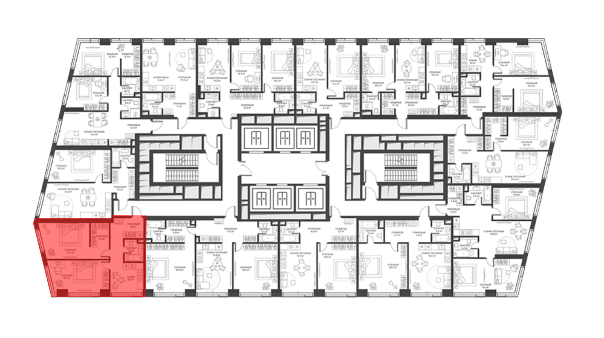 В проекте представлены студии и квартиры с 1, 2 и 3 комнатами, в которых предусмотрены потолки от 3 метров и панорамные окна. Помещения идут без внутренней отделки, что дает возможность будущим владельцам самостоятельно организовать пространство. Для удобства жителей установлена система умный дом, которая позволяет через мобильное приложение управлять доступом в квартиру и видеонаблюдением.