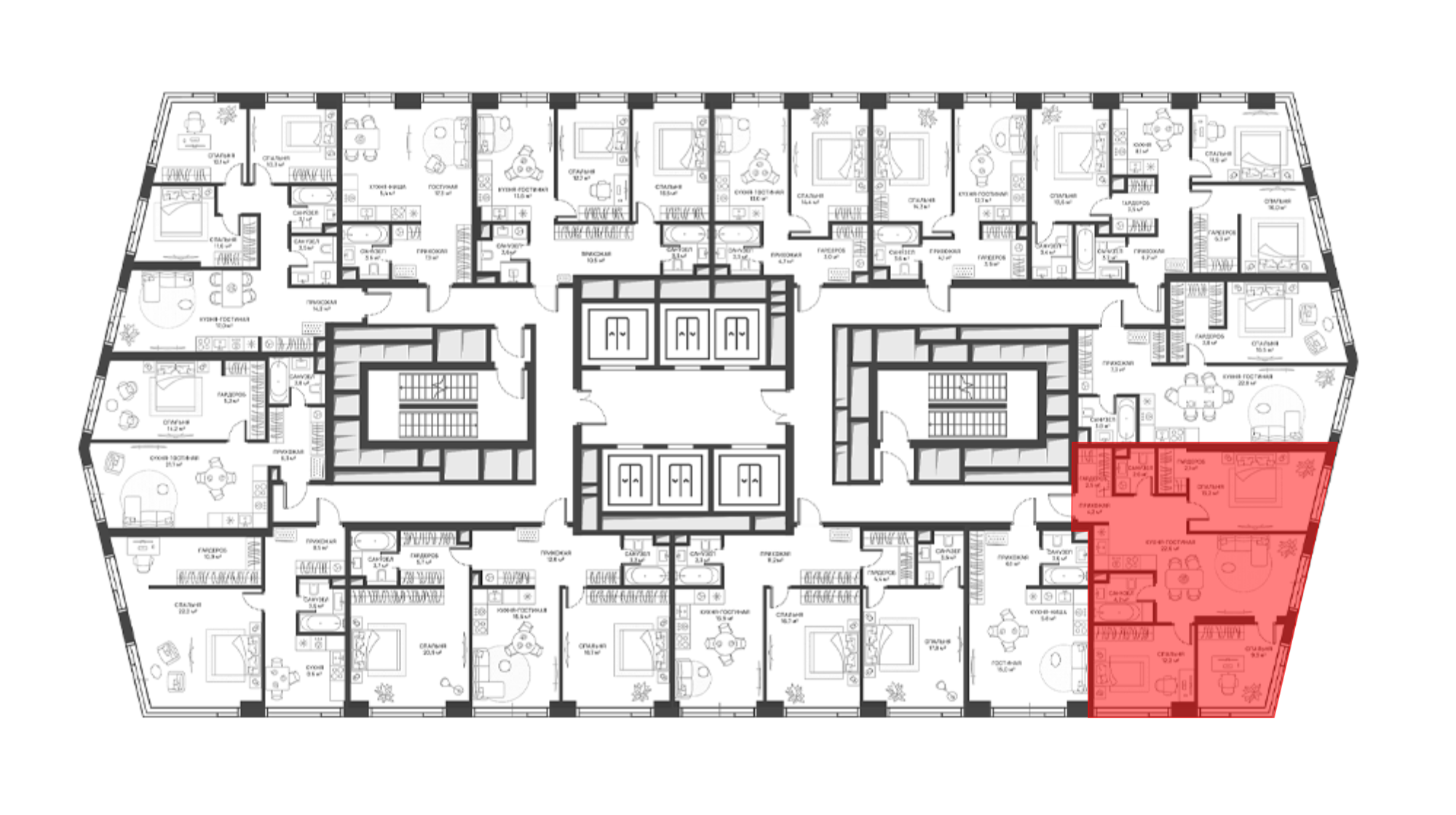 В проекте представлены студии и квартиры с 1, 2 и 3 комнатами, в которых предусмотрены потолки от 3 метров и панорамные окна. Помещения идут без внутренней отделки, что дает возможность будущим владельцам самостоятельно организовать пространство. Для удобства жителей установлена система умный дом, которая позволяет через мобильное приложение управлять доступом в квартиру и видеонаблюдением.