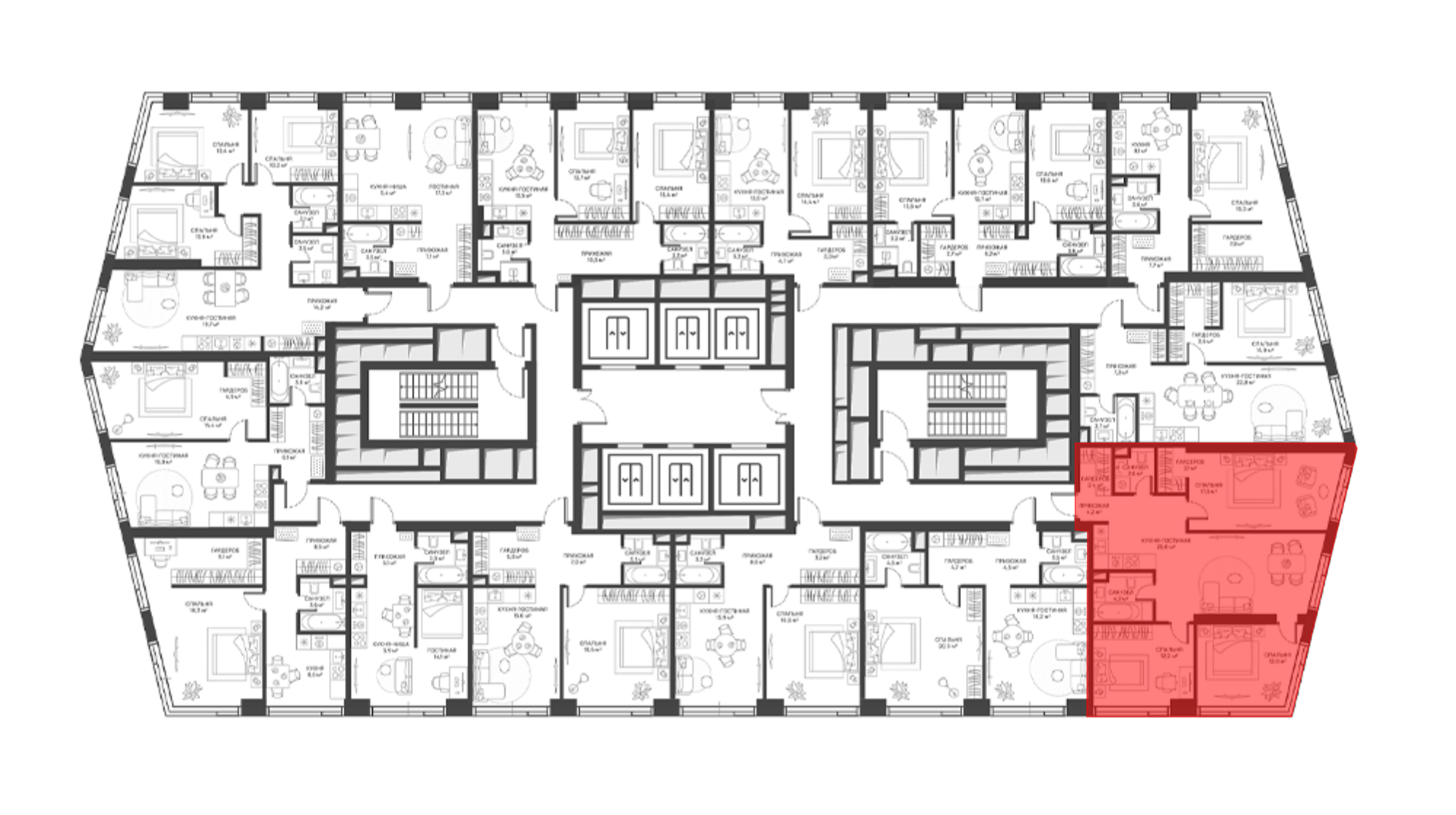 В проекте представлены студии и квартиры с 1, 2 и 3 комнатами, в которых предусмотрены потолки от 3 метров и панорамные окна. Помещения идут без внутренней отделки, что дает возможность будущим владельцам самостоятельно организовать пространство. Для удобства жителей установлена система умный дом, которая позволяет через мобильное приложение управлять доступом в квартиру и видеонаблюдением.