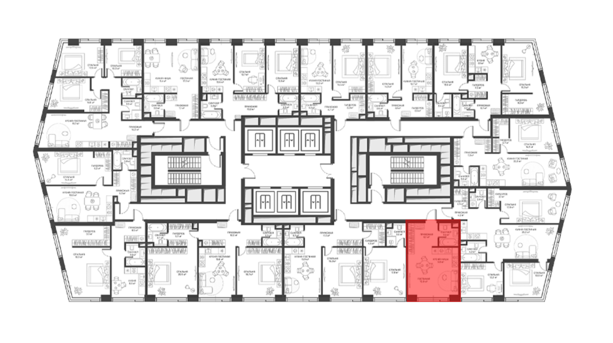 В проекте представлены студии и квартиры с 1, 2 и 3 комнатами, в которых предусмотрены потолки от 3 метров и панорамные окна. Помещения идут без внутренней отделки, что дает возможность будущим владельцам самостоятельно организовать пространство. Для удобства жителей установлена система умный дом, которая позволяет через мобильное приложение управлять доступом в квартиру и видеонаблюдением.