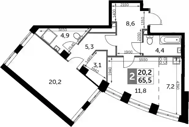 38 176 923 ₽2-к.квартира, 65.5 м², 6 эт.