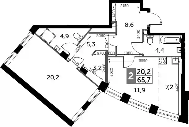 2-к.квартира, 65.7 м², 20 эт. в ЖК Sydney City Корпус 2.2