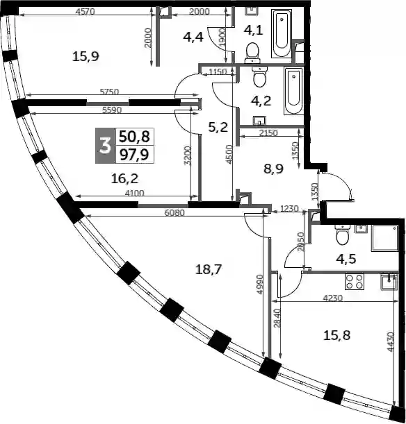 3-к.квартира, 97.9 м², 33 эт. в ЖК Sydney City Корпус 2.2