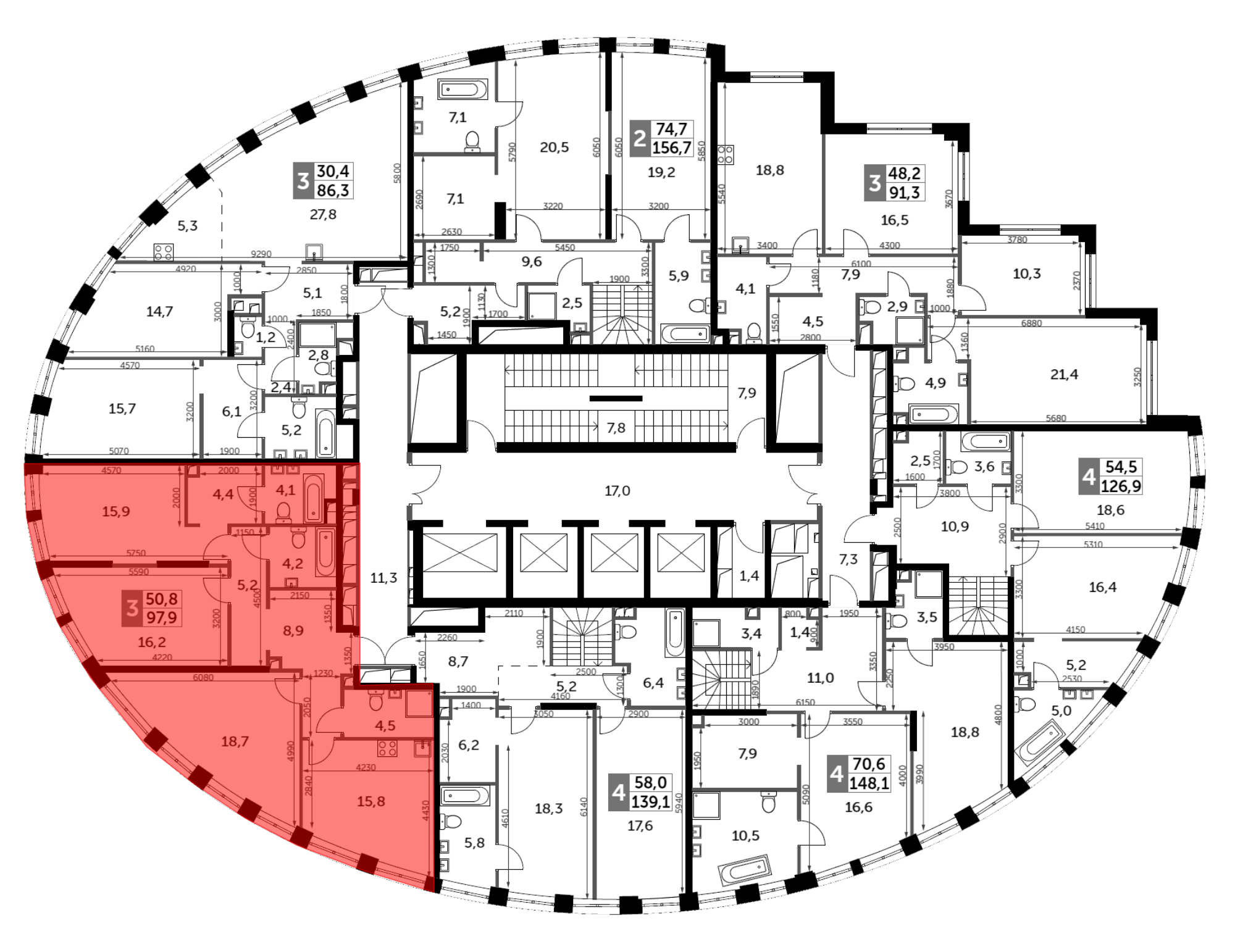 77 849 730 ₽3-к.квартира, 97.9 м², 41 эт.