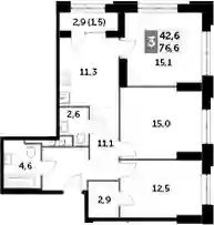 43 447 324 ₽3-к.квартира, 70.79 м², 15 эт.