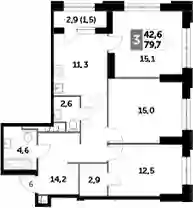 43 447 324 ₽3-к.квартира, 70.79 м², 15 эт.