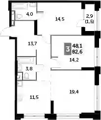 63 288 960 ₽3-к.квартира, 81.6 м², 9 эт.