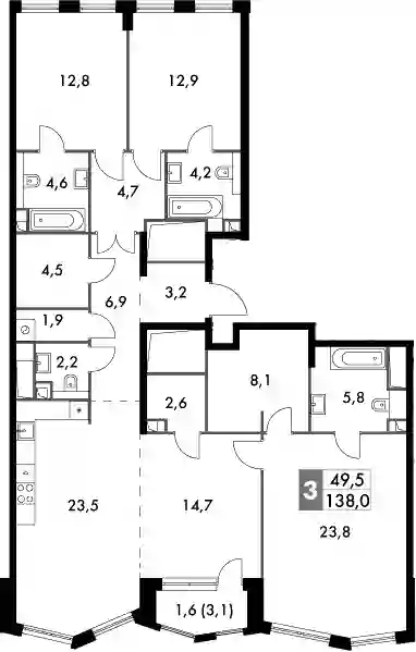 137 978 370 ₽4-к.квартира, 126.9 м², 43 эт.