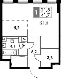 24 684 256 ₽2-к.квартира, 41 м², 21 эт.