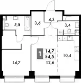 41 201 196 ₽3-к.квартира, 53.8 м², 15 эт.