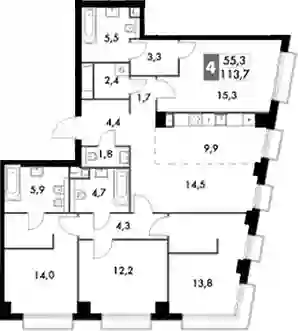 5+к.квартира, 113.7 м², 32 эт. в ЖК Sydney City Корпус 5.2