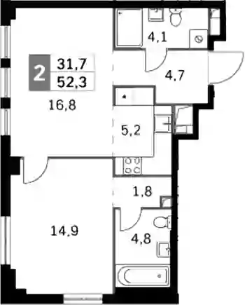 34 317 849 ₽3-к.квартира, 56.91 м², 2 эт.