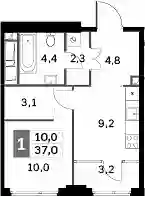38 217 740 ₽2-к.квартира, 45.1 м², 10 эт.