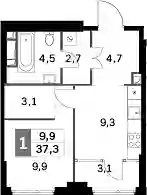 1-к.квартира, 34.2 м², 9 эт. в ЖК Sydney City Корпус 6.3