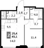 2-к.квартира, 45.1 м², 41 эт. в ЖК Sydney City Корпус 6.3