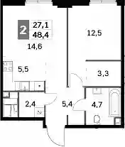 2-к.квартира, 48.4 м², 36 эт. в ЖК Sydney City Корпус 6.3