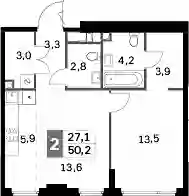 41 572 600 ₽2-к.квартира, 54.5 м², 27 эт.