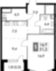 41 201 196 ₽3-к.квартира, 53.8 м², 15 эт.