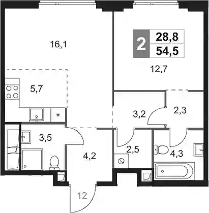 2-к.квартира, 54.5 м², 27 эт. в ЖК Sydney City Корпус 6.3