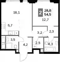 34 308 295 ₽2-к.квартира, 54.5 м², 43 эт.