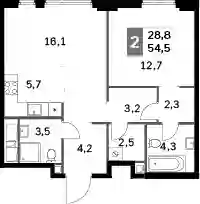 54.5 м2