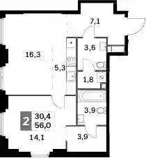 38 588 216 ₽3-к.квартира, 58.01 м², 14 эт.