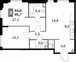 3-к.квартира, 65.7 м², 39 эт. в ЖК Sydney City Корпус 6.3