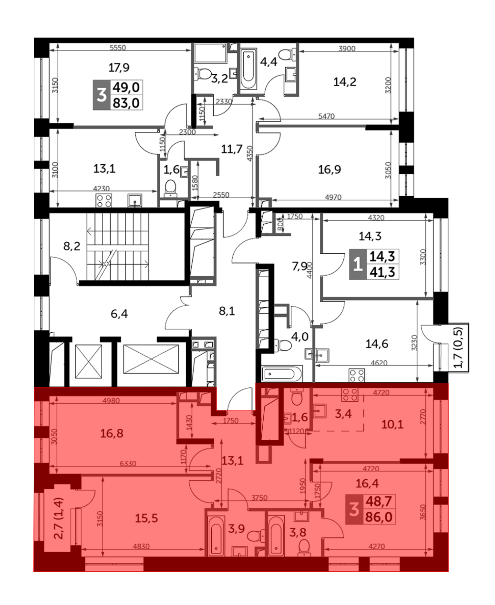 58 141 501 ₽3-к.квартира, 83 м², 20 эт.