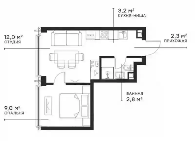 2-к.квартира, 29.32 м², 38 эт. в ЖК Symphony 34 Корпус A - Graphite