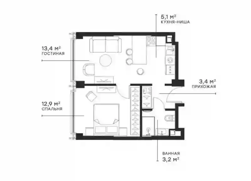 2-к.квартира, 37.98 м², 16 эт. в ЖК Symphony 34 Корпус A - Graphite