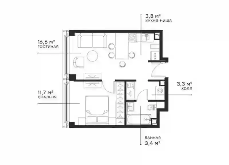 2-к.квартира, 38.78 м², 28 эт. в ЖК Symphony 34 Корпус A - Graphite