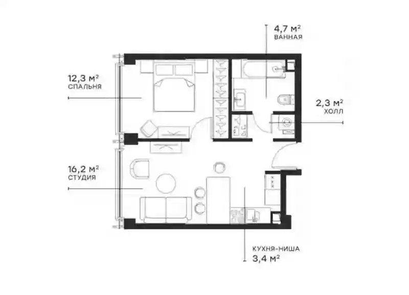 21 643 349 ₽2-к.квартира, 42.7 м², 2 эт.