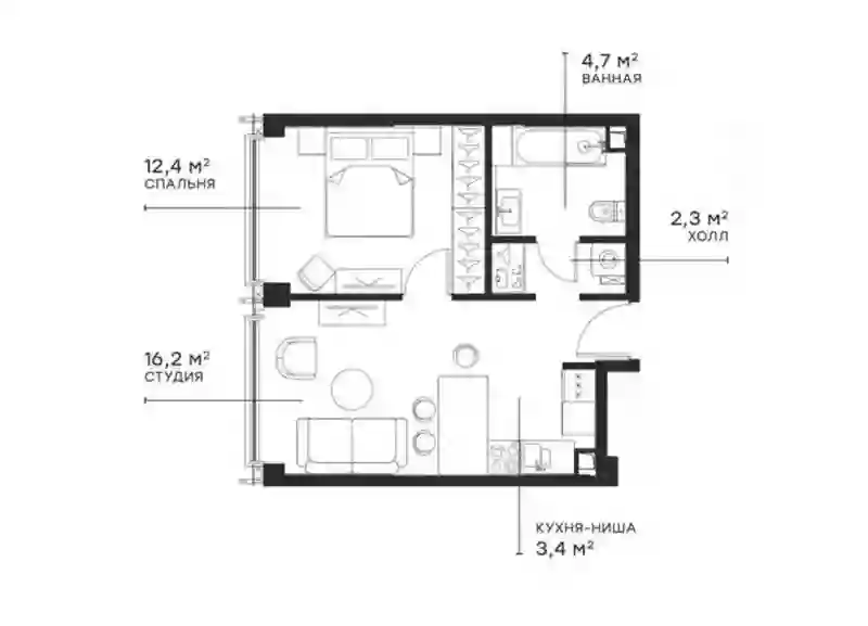 2-к.квартира, 38.91 м², 25 эт. в ЖК Symphony 34 Корпус A - Graphite