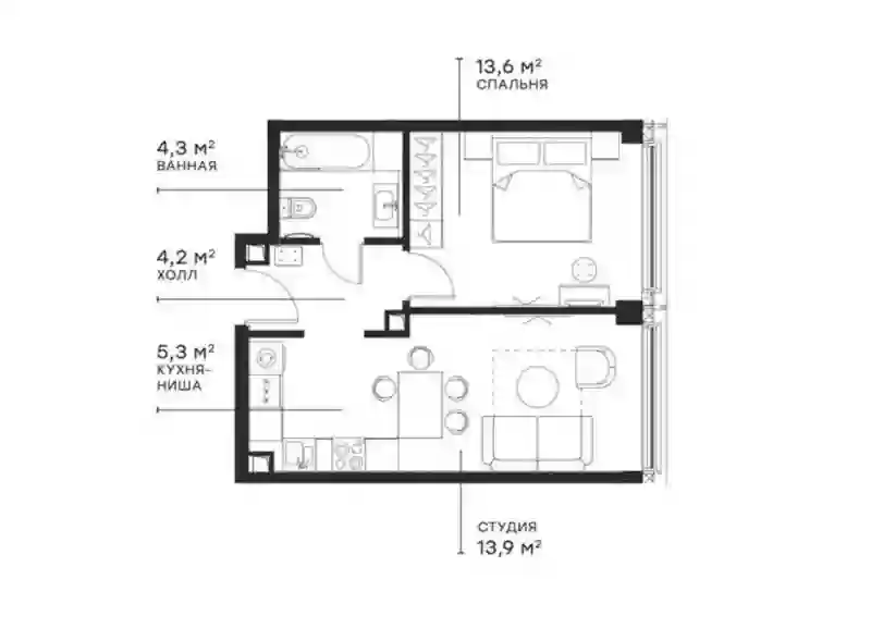 21 643 349 ₽2-к.квартира, 42.7 м², 2 эт.