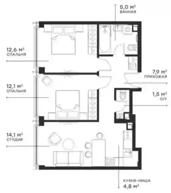 3-к.квартира, 58.03 м², 44 эт. в ЖК Symphony 34 Корпус A - Graphite