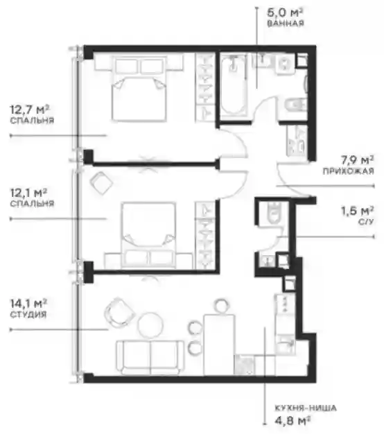 3-к.квартира, 58.11 м², 45 эт. в ЖК Symphony 34 Корпус A - Graphite