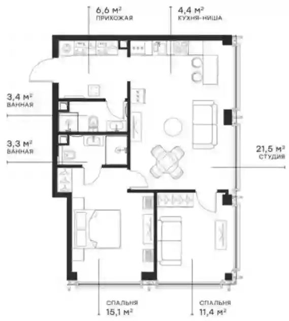 3-к.квартира, 65.66 м², 41 эт. в ЖК Symphony 34 Корпус A - Graphite