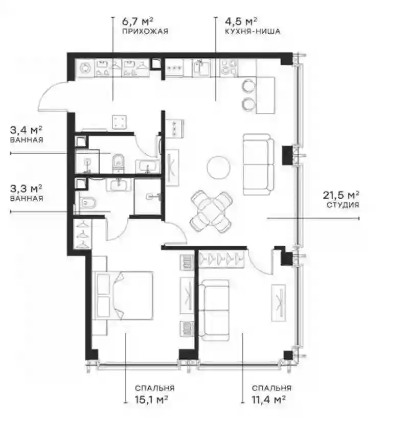 3-к.квартира, 65.84 м², 39 эт. в ЖК Symphony 34 Корпус A - Graphite