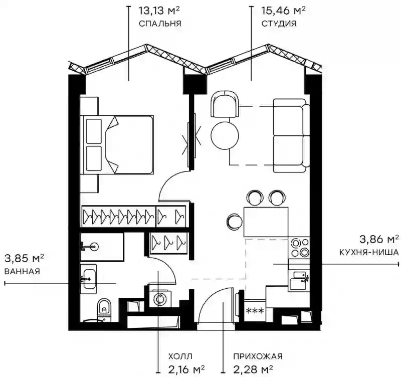 2-к.квартира, 40.74 м², 12 эт. в ЖК Symphony 34 Корпус B - Crystal