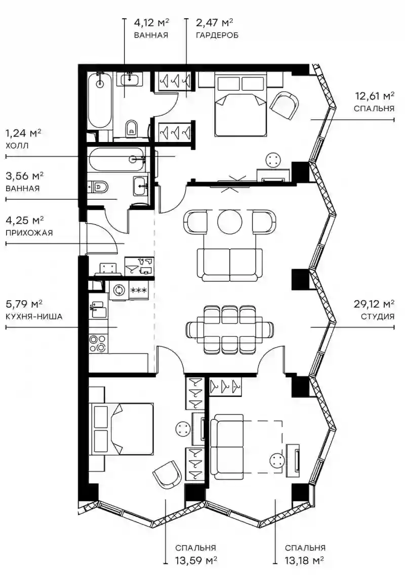 42 651 718 ₽4-к.квартира, 90.1 м², 22 эт.