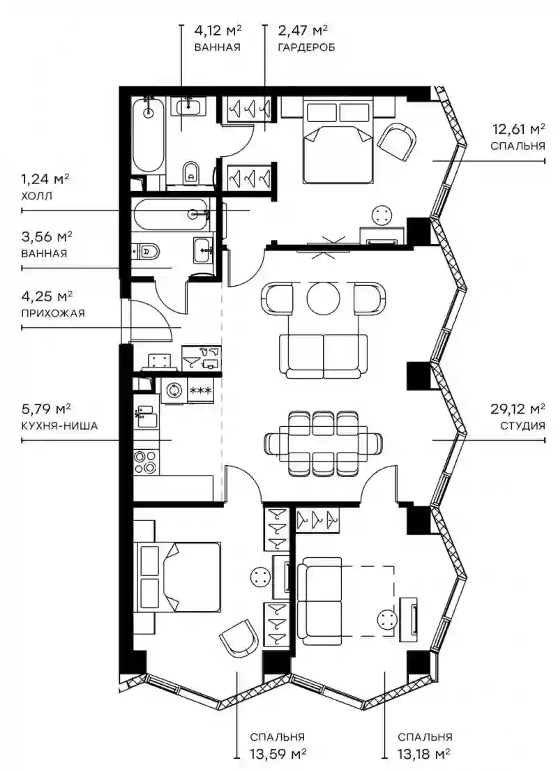 42 651 718 ₽4-к.квартира, 90.1 м², 22 эт.