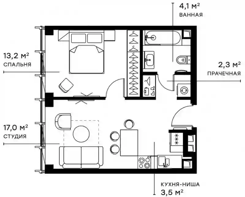 Планировочные решения включают как классические форматы, так и европланировки. Квартиры сдаются без отделки, с потолками высотой 3,1 метра и увеличенной площадью остекления. В некоторых квартирах предусмотрены просторные террасы.