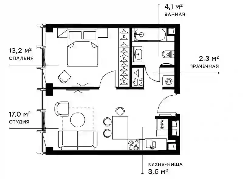 Планировочные решения включают как классические форматы, так и европланировки. Квартиры сдаются без отделки, с потолками высотой 3,1 метра и увеличенной площадью остекления. В некоторых квартирах предусмотрены просторные террасы.