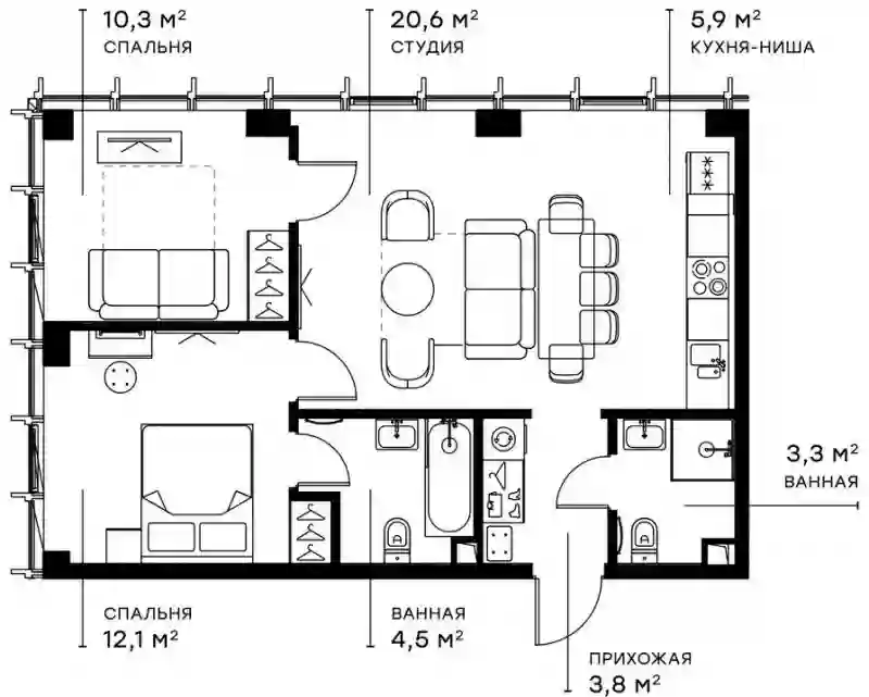 42 913 816 ₽3-к.квартира, 65.9 м², 17 эт.