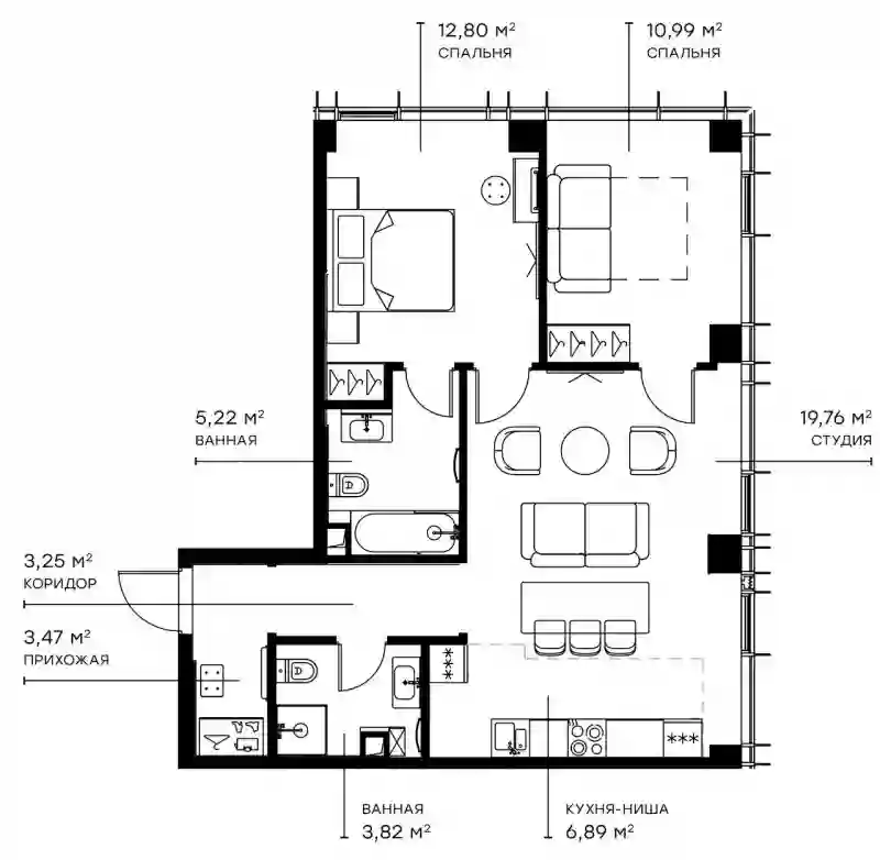 3-к.квартира, 67.4 м², 5 эт. в ЖК Symphony 34 Корпус С - Silver