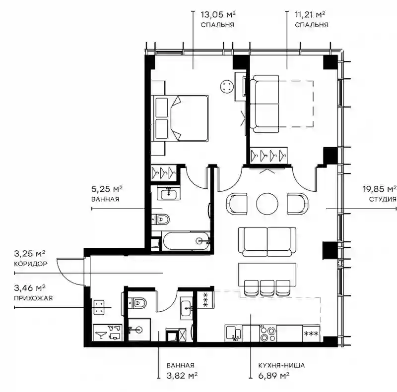 3-к.квартира, 67.8 м², 32 эт. в ЖК Symphony 34 Корпус С - Silver