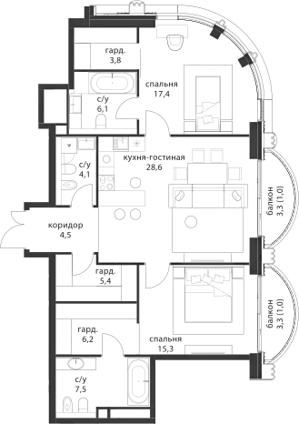 Квартир в ЖК: 155