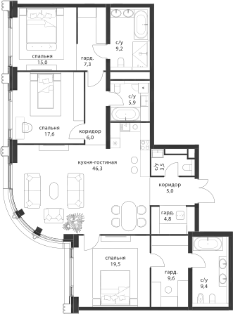 293 215 575 ₽5+к.квартира, 150.3 м², 11 эт.
